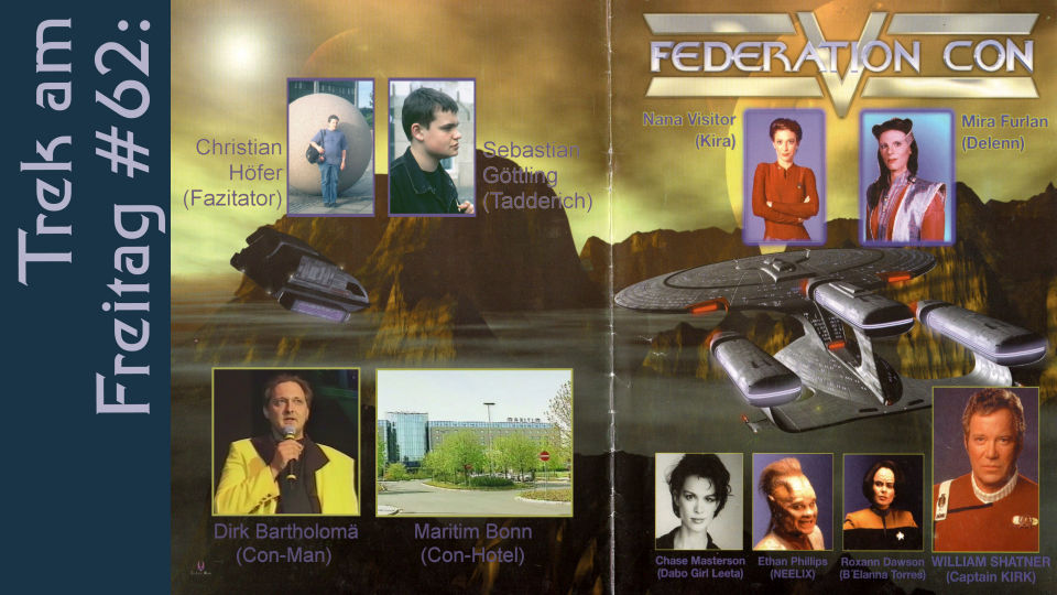 9. bis 11. Mai 1997: Christian & Sebastian erzählen Simon und euch Geschichten von ihrer allerersten Star-Trek-Convention, als sie ein trekkiges Paradies betraten: Tausende Fans, Menschenschlangen, stickige Flure, Schlafen im Budget-Hotel, epische Panels, Autogramm-Angst, eingeschränkte Sicht! Und als Höhepunkt ein mit 66 Jahren nahezu jugendlicher William Shatner. Zum Glück fertigte der Fazitator damals Aufnahmen an und schrieb Protokoll, so dass diese Folge die fünfte FedCon wieder lebendig werden lässt. Sudtunnel oder Stau!