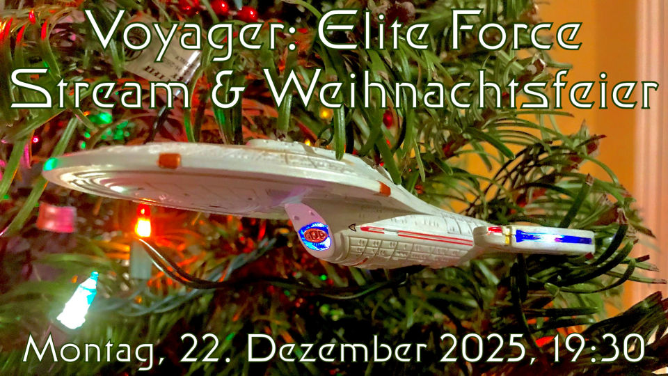 Unser Festtagsprogramm ist in vollem Gange! Am Montag steigt unsere innerbetriebliche Weihnachtsfeier mit Keksen, Glühwein & euch. Während wir im Add-on von „Elite Force“ einen Jugendtraum – eine halbwegs frei begehbare Voyager – erforschen, wollen wir mit euch Spaß haben und über die 2026er Pläne des Podcasts sprechen. Seid dabei im Livestream, nur echt mit dem besten & weihnachtlichsten Star-Trek-Chat des Delta-Quadranten … wir freuen uns auf euch!
